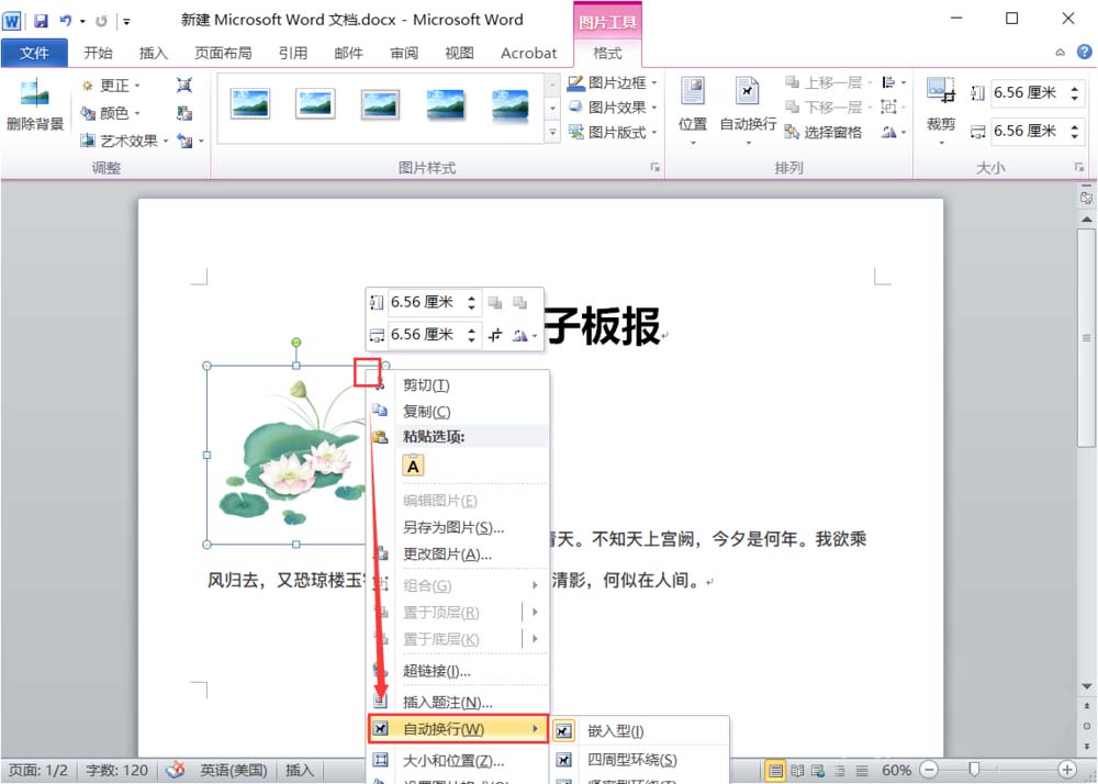 5、鼠標(biāo)右鍵“自動(dòng)換行”-“四周環(huán)繞型”。