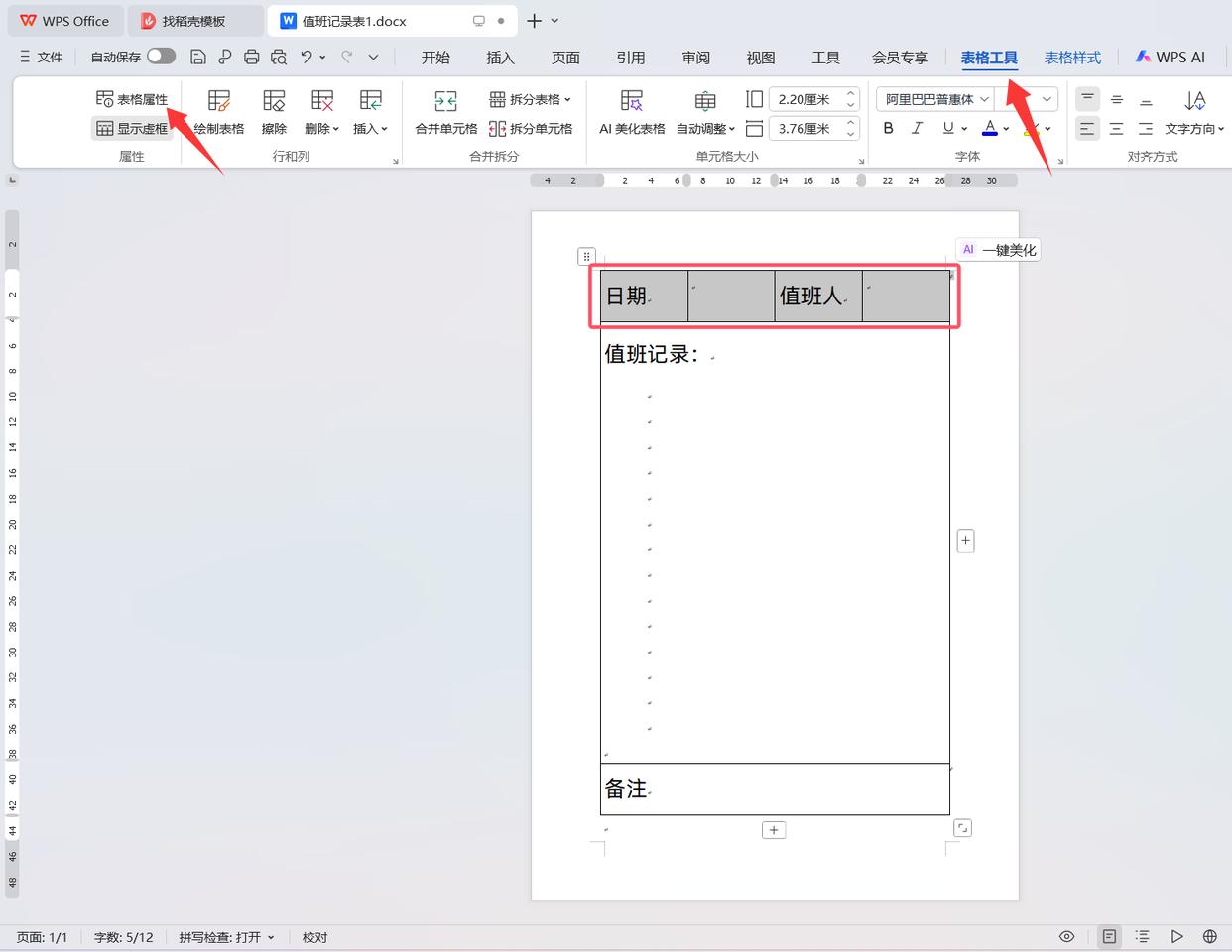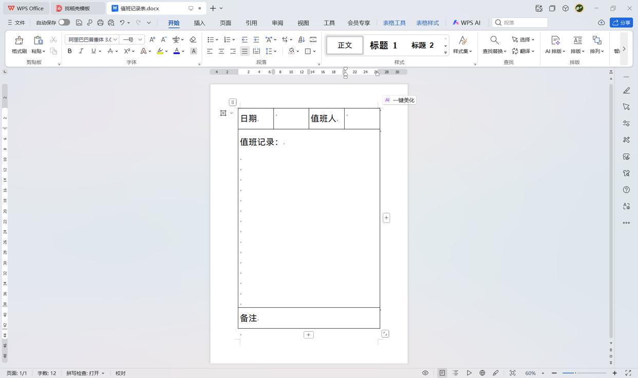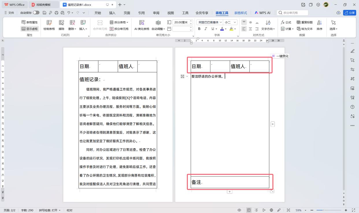 接下來再在表格中填寫值班記錄內(nèi)容,表格跨頁時標(biāo)題行就能重復(fù)顯示,且表格尾部顯示在頁面底端。