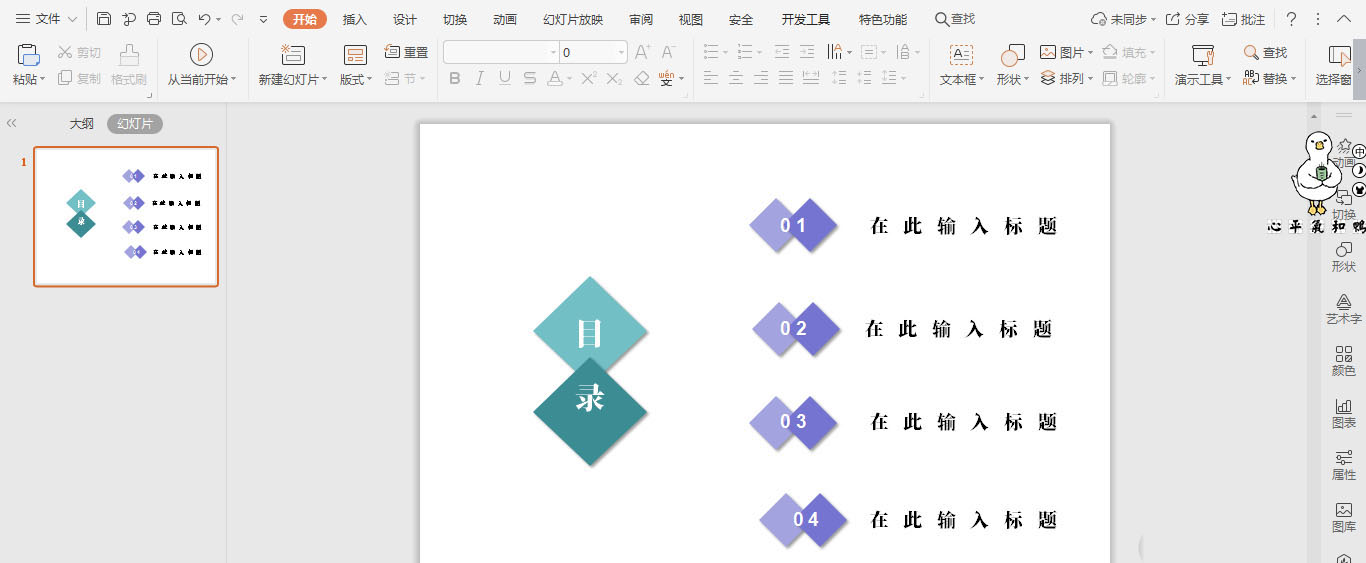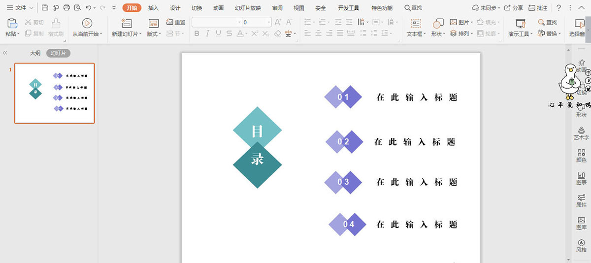 wpsPPT怎么制作漂亮的雙菱形目錄樣式?