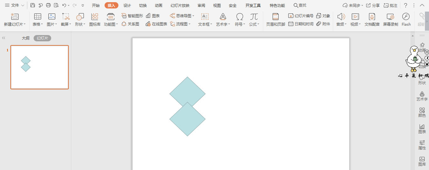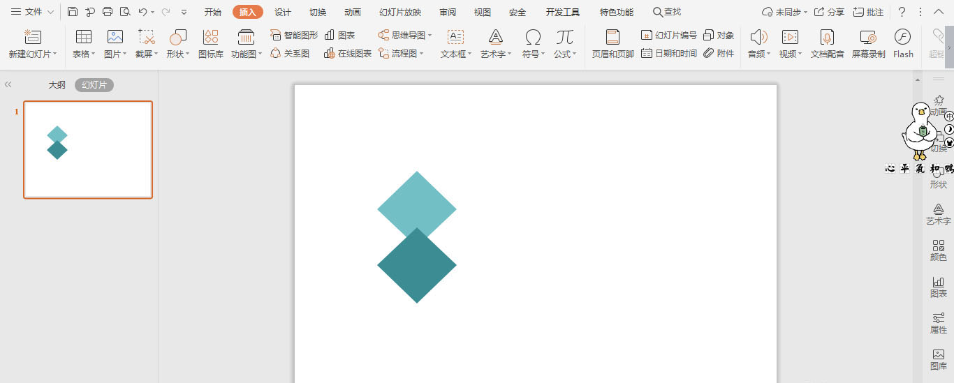 5、按照同樣的方法設(shè)置制作出雙菱形的形狀,放置在頁(yè)面的右側(cè),并在相應(yīng)的位置輸入標(biāo)題。