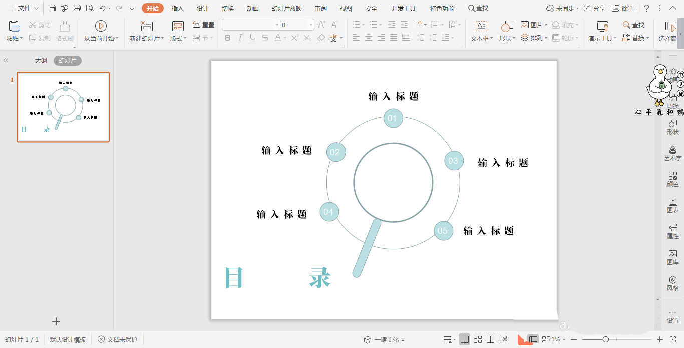wpsPPT怎么制作放大鏡圖形的目錄樣式?