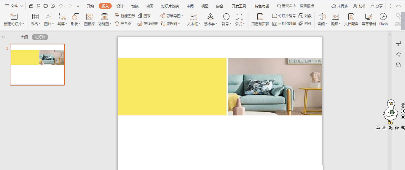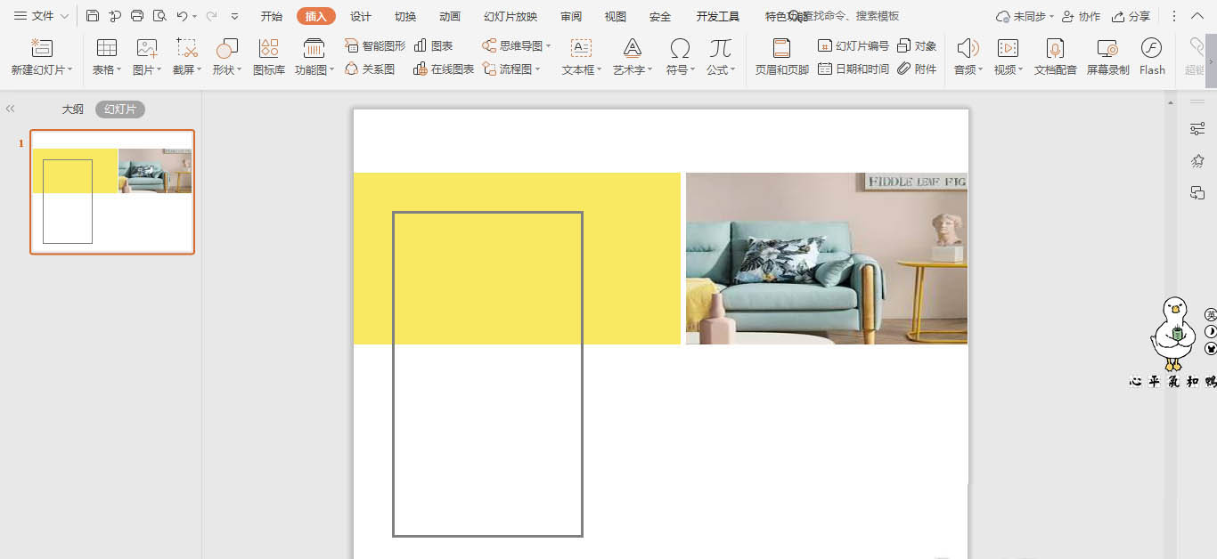 3、在插入選項(xiàng)卡中點(diǎn)擊圖片,選擇本地圖片,插入一張準(zhǔn)備好的背景圖片,放置在頁(yè)面的右側(cè),與矩形相齊平。