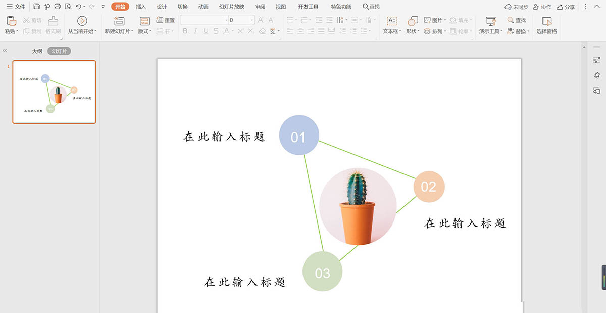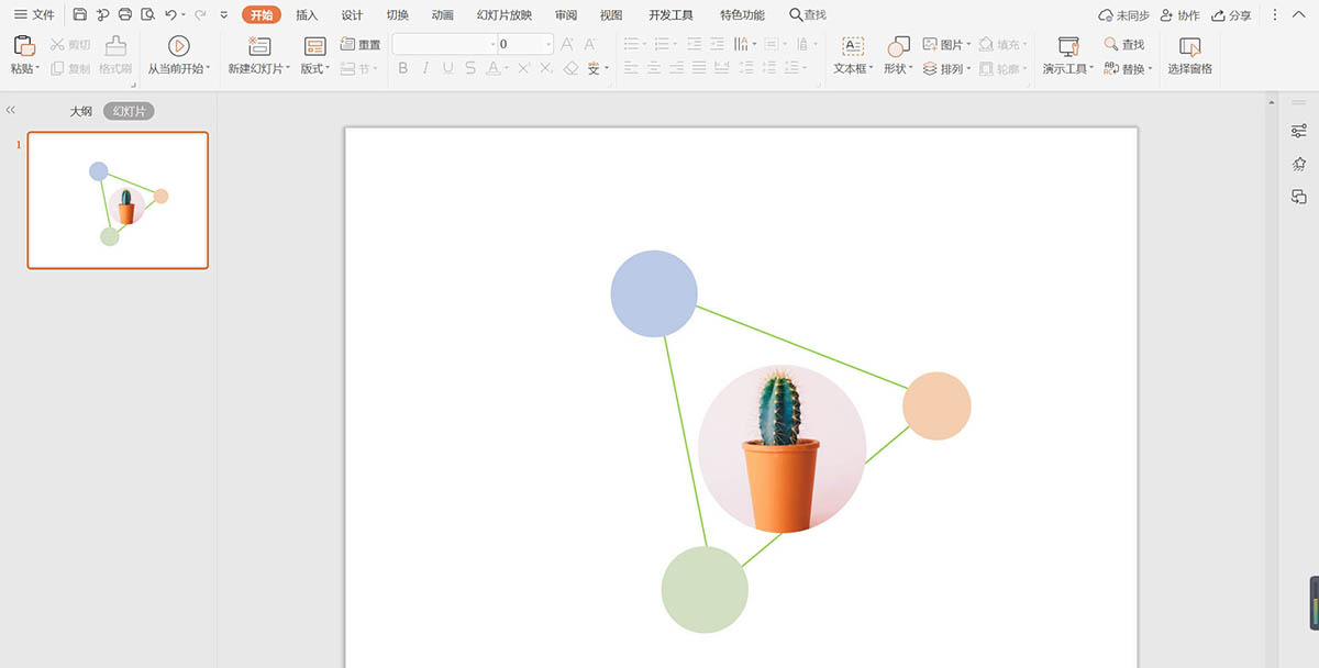 5、在三角形中間插入一張圓形的綠色植物圖片,效果如圖所示。