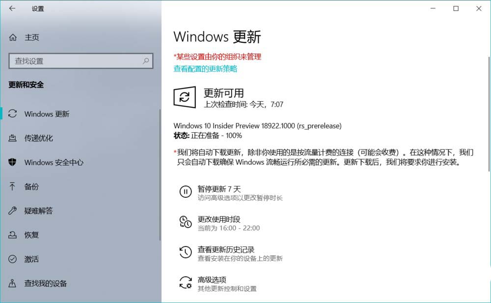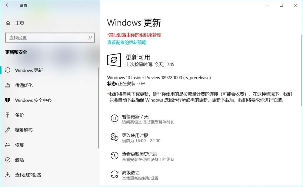 Win10 20H1快速預覽版18922怎么手動更新升級?