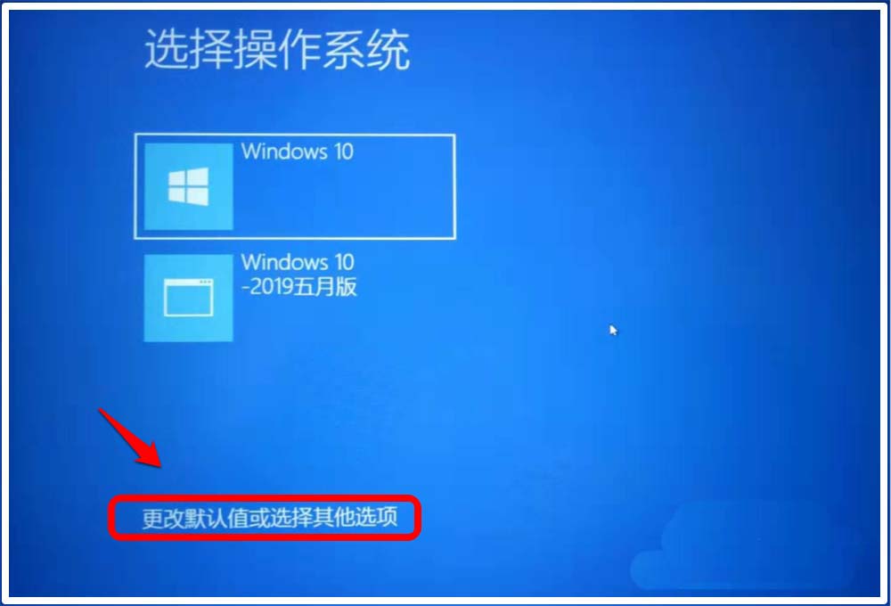1、按下主機(jī)上電源鍵(筆記本按下鍵盤上電源鍵) - 關(guān)機(jī),關(guān)機(jī)后再按下電源鍵重新開機(jī),開機(jī)后按下鍵盤上的 Ctrl 鍵,進(jìn)入【選擇操作系統(tǒng)】界面,點擊:更改默認(rèn)值或選擇其他選項;