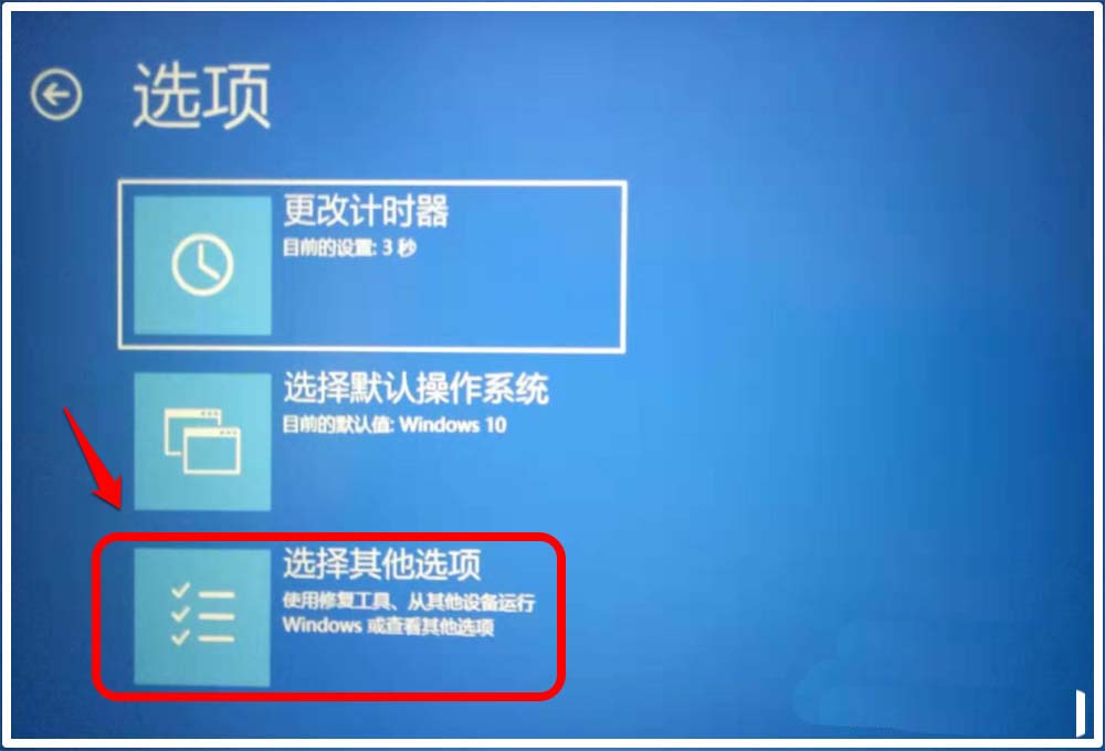 2、然后進(jìn)入【選項】界面,我們點擊:選擇其他選項,進(jìn)入【選擇一個選項】界面;