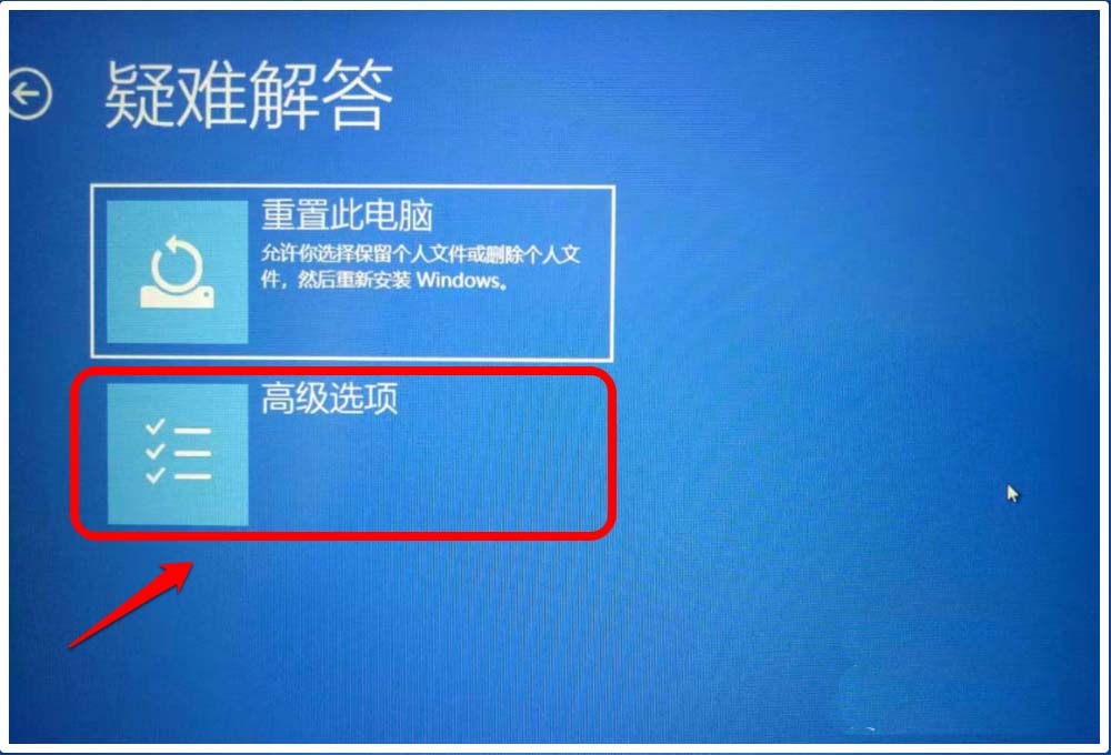 4、在【疑難解答】窗口中,我們再點擊:高級選項;