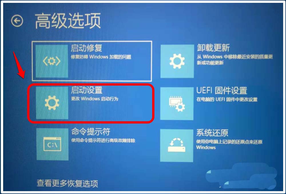 5、在高級選項窗口中,點擊:啟動設(shè)置;