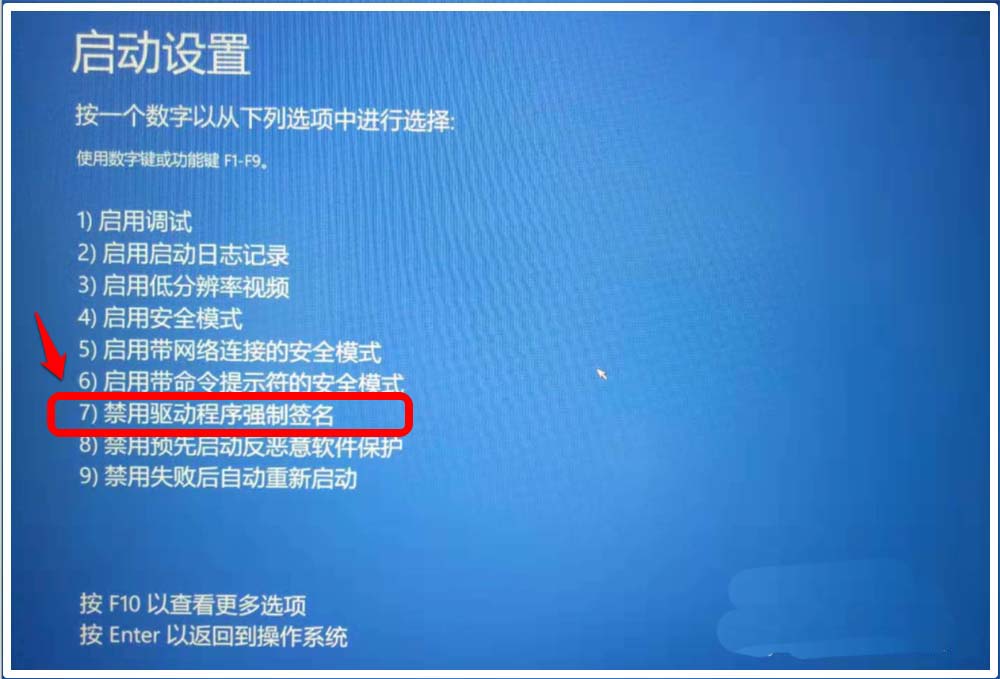 電腦重新啟動,啟動后進(jìn)入【啟動設(shè)置】窗口,我們按下鍵盤上的 數(shù)字鍵【7】;