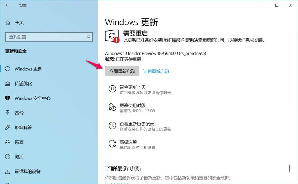 二、更新Windows 10 Insider Preview 18956.1000 (rs_prerelease)系統(tǒng)