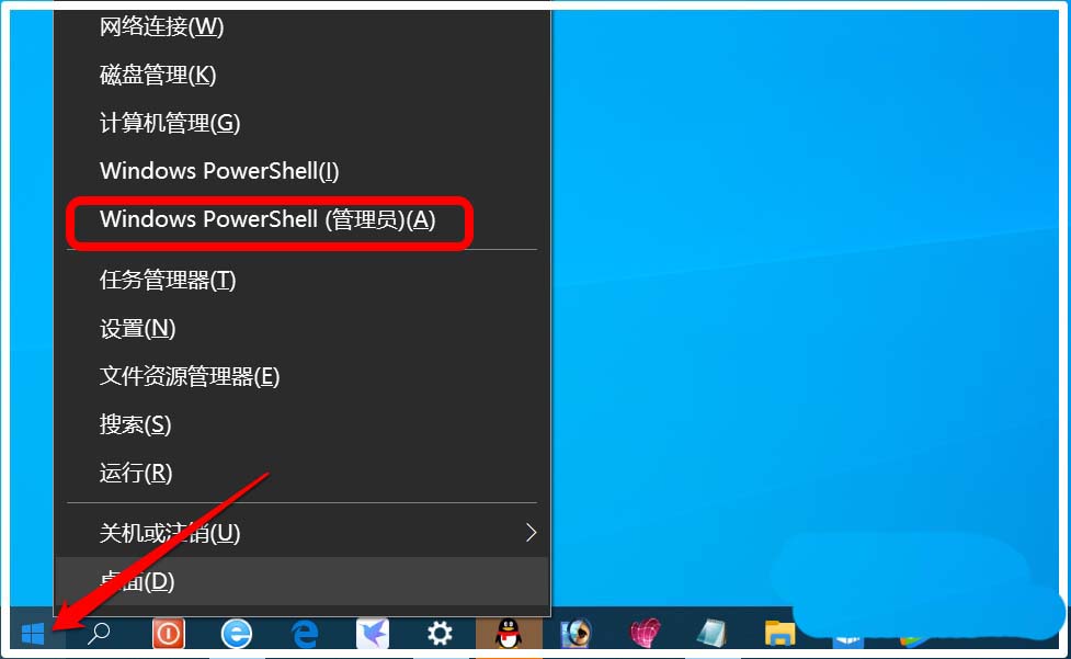 1、右鍵點(diǎn)擊系統(tǒng)桌面左下角的【開(kāi)始】,在開(kāi)始菜單中點(diǎn)擊【Windows PowerShell】或【命令提示符(管理員)】;