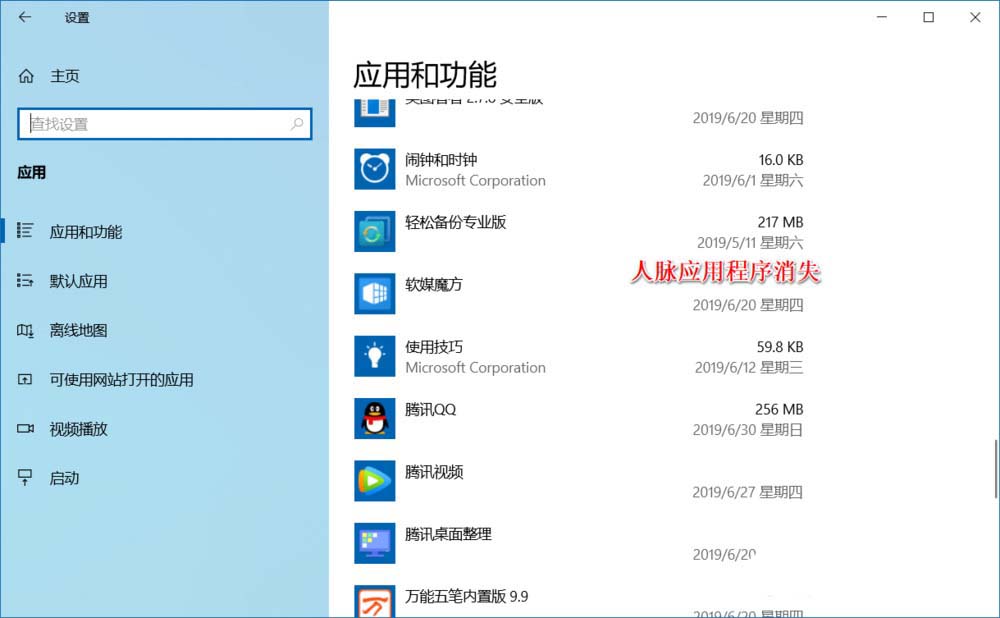 說(shuō)明Windows 10系統(tǒng)已卸載人脈內(nèi)置程序。