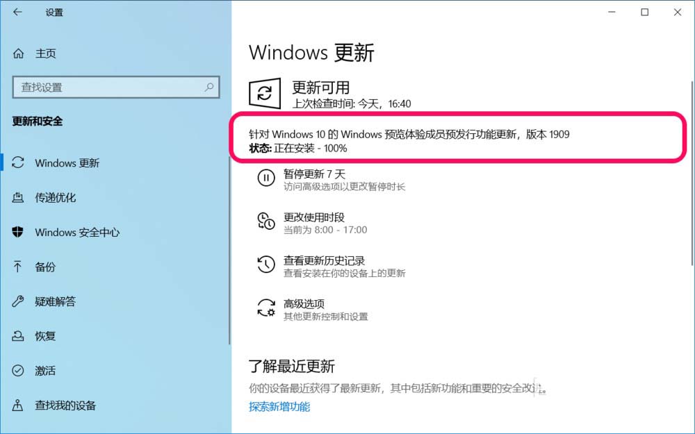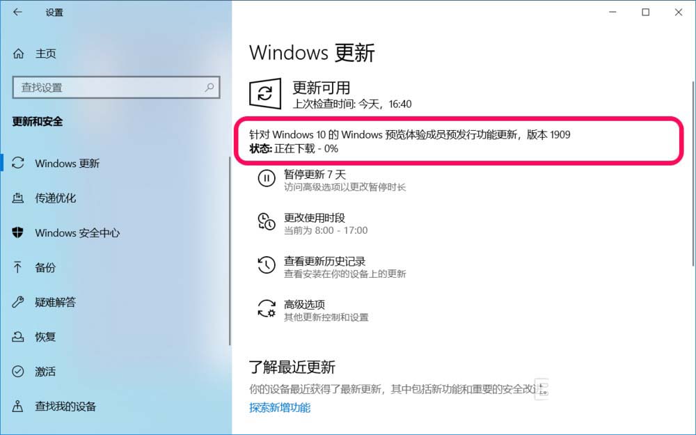針對 Windows 10的 Windows 預(yù)覽體驗(yàn)人員預(yù)發(fā)行功能更新,版本 1909