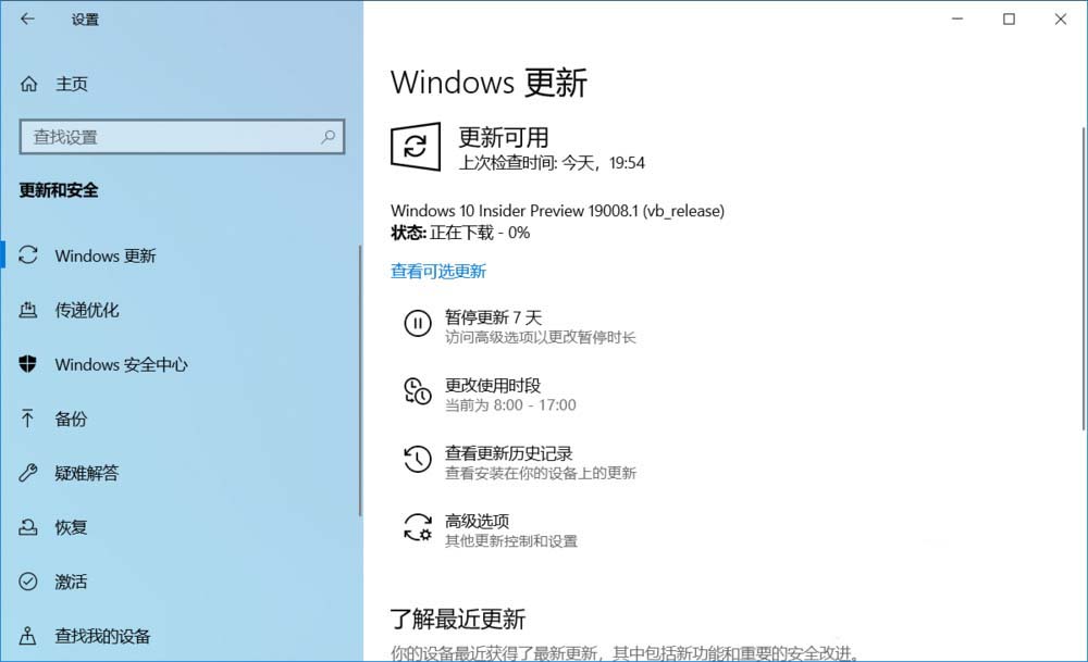 Win10 20H1快速預覽版19008怎么手動更新升級?