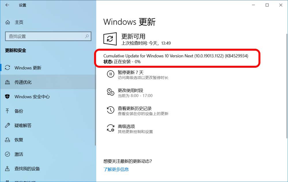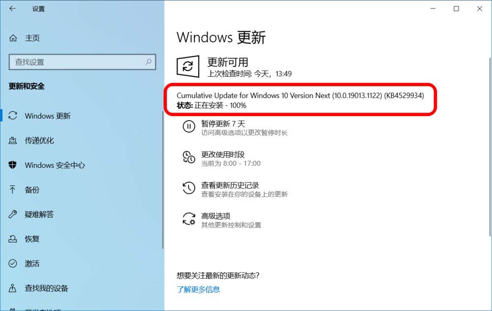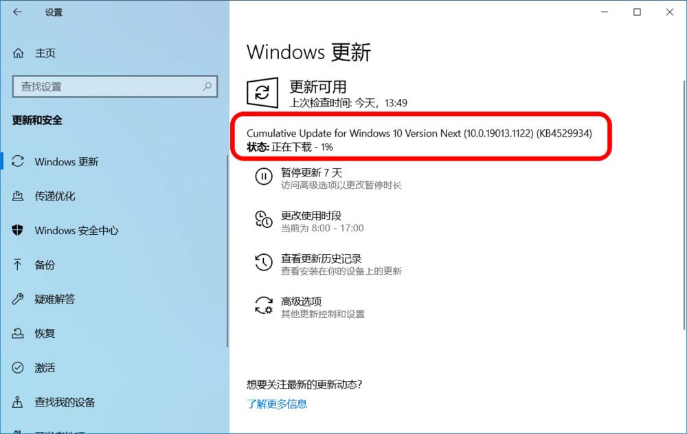 Win10 1903怎么手動更新升級到慢速預(yù)覽版19013.1122?