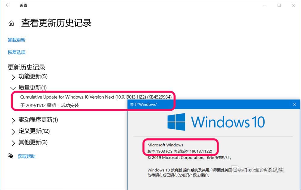 于 2019/11/12 星期二 成功安裝(1903 - 19013.1122)