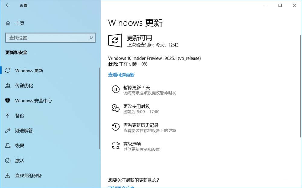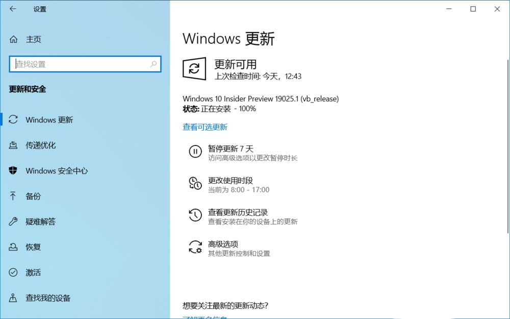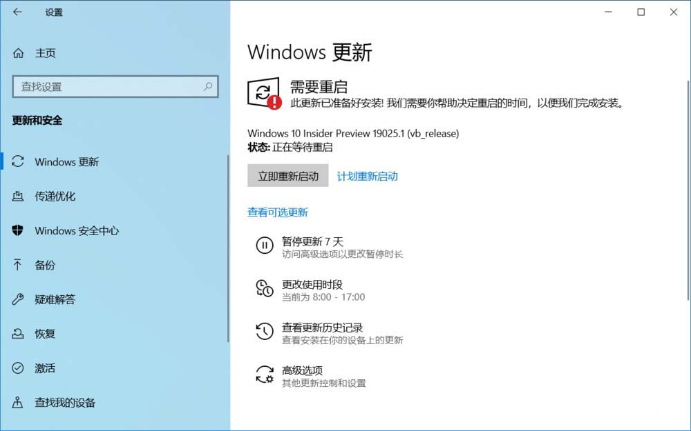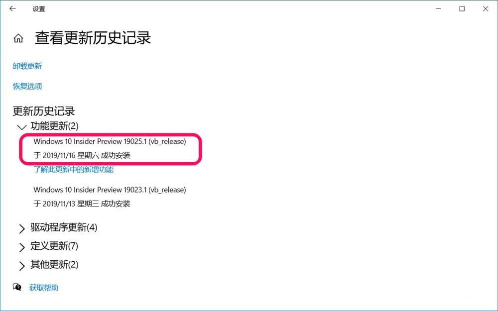 2、 更新Windows 10 Insider Preview 19025.1 (vb_release)系統(tǒng)