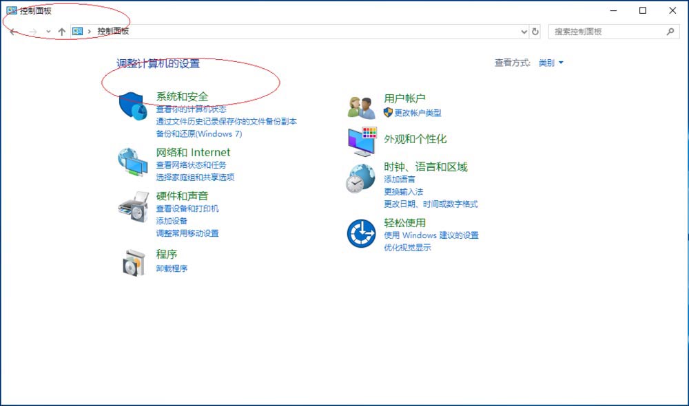 2、喚出"控制面板"程序窗口,點(diǎn)擊"系統(tǒng)和安全"圖標(biāo)。