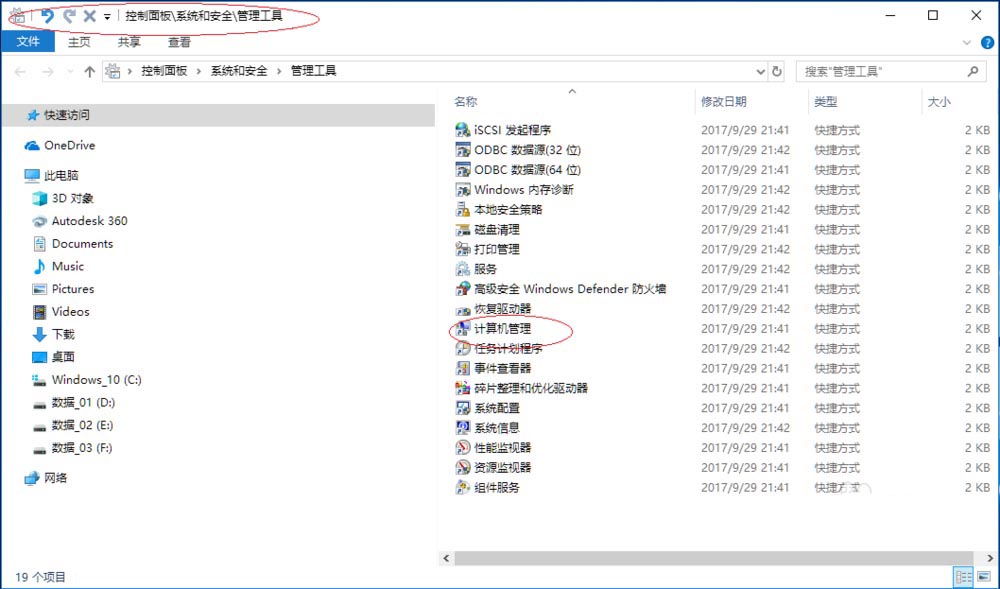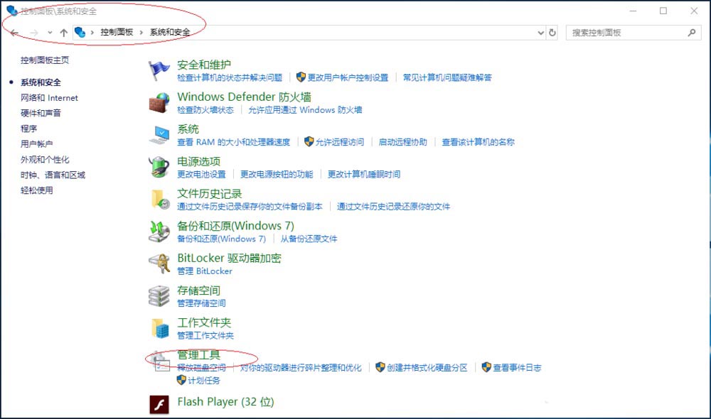 3、喚出"系統(tǒng)和安全"選項(xiàng)界面,點(diǎn)擊"管理工具→計(jì)算機(jī)管理"圖標(biāo)。