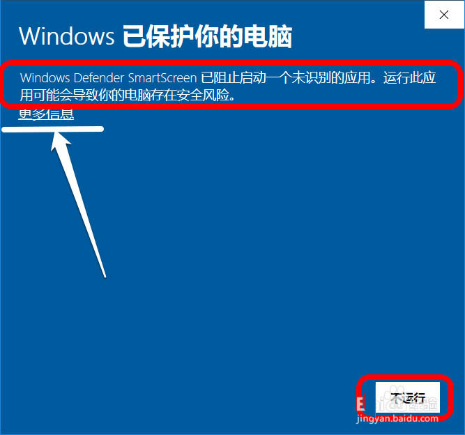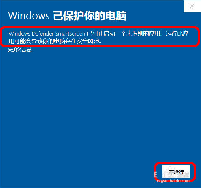 Windows Defender SmartScreen 已阻止啟動一個未識別的應用。運行此應用可能會導致你的電腦存在安全風險。