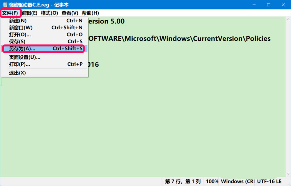 2、點(diǎn)擊記事本左上角的【文件】,在下拉菜單中點(diǎn)擊【另存為】或按下鍵盤上的【Ctrl+Shift+S】組合鍵,打開文件另存為窗口;