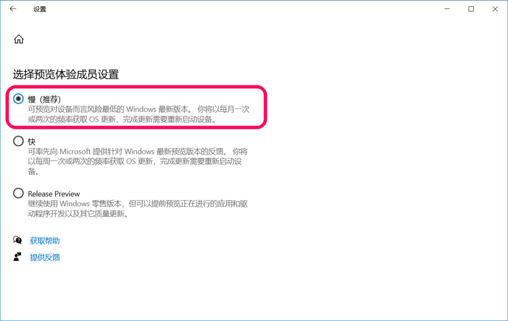 1、選擇預覽體驗成員設置:慢