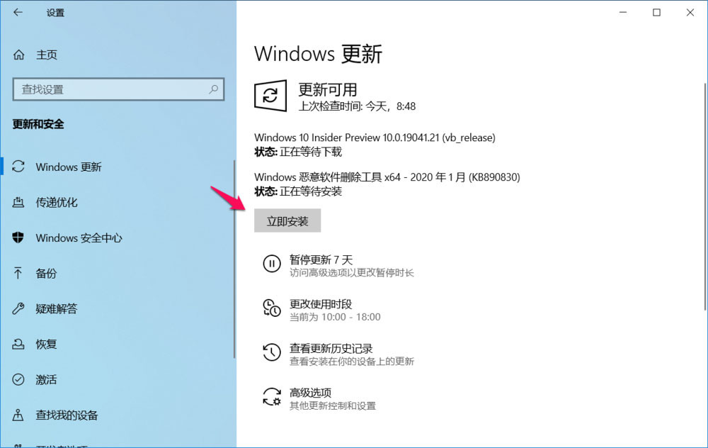 Win10 2004慢速預覽版19041.21怎么手動更新?