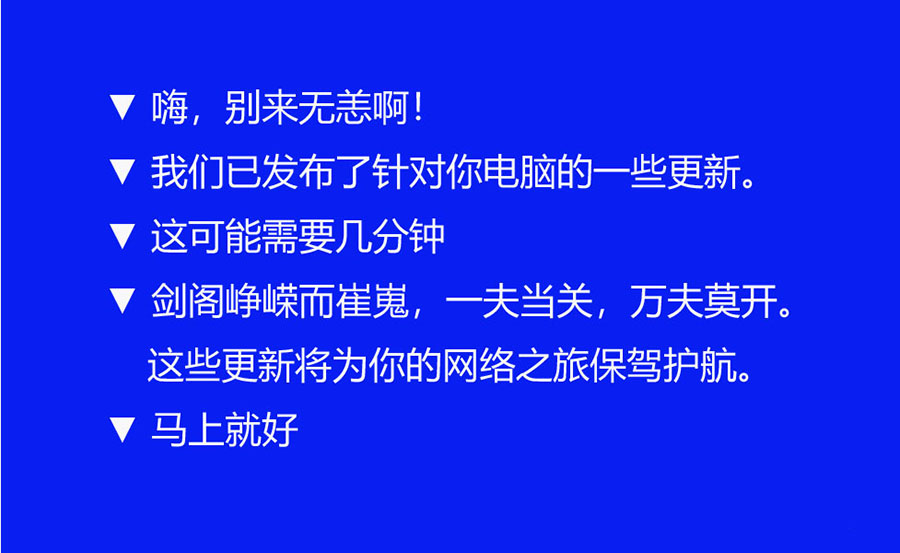 電腦第四次重啟后,先進行系統(tǒng)更新后的后續(xù)操作,共顯示五個界面: