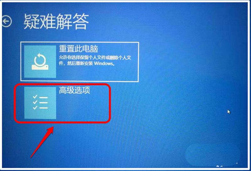4、在【疑難解答】界面窗口中,點擊:高級選項;