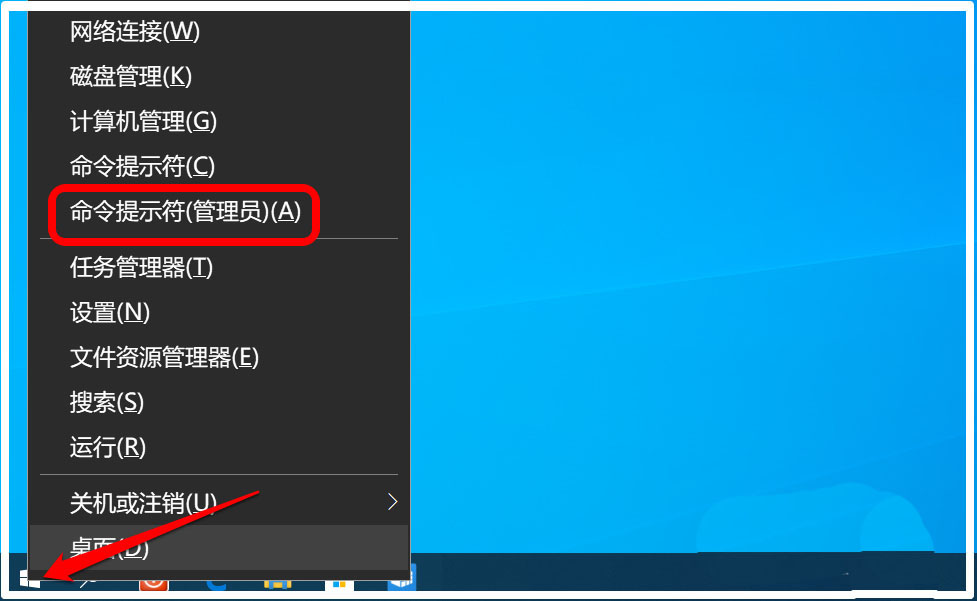 8、此時電腦重啟,進入【安全模式】,在安全模式窗口中,我們右鍵點擊桌面左下角的【開始】,在開始菜單中點擊:命令提示符(管理員);