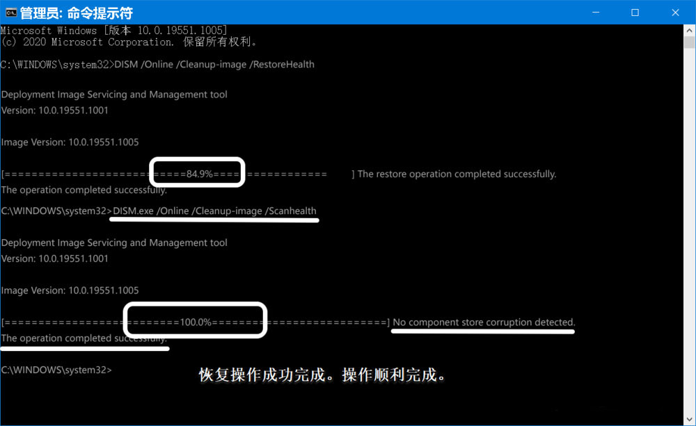 沒有檢測到組件存儲損壞。操作順利完成。