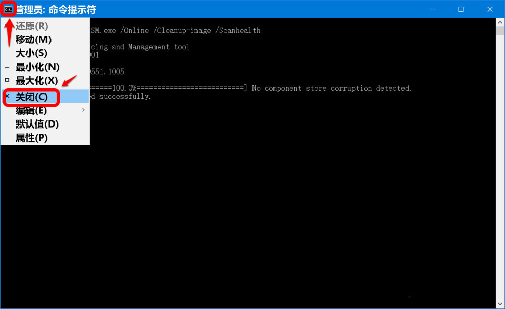 10、我們再復(fù)制 DISM.exe /Online /Cleanup-image /Scanhealth 命令到管理員命令提示符窗口中,按下鍵盤上的回車鍵,顯示: