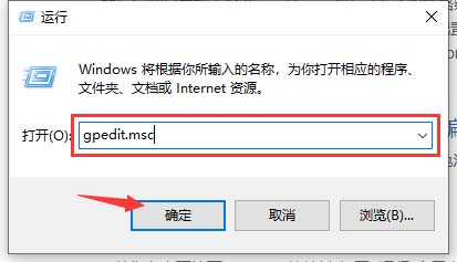 2、打開運行后,在運行搜索框輸入“gpedit.msc”,點擊下方的確定按鈕,打開本地組策略編輯器。