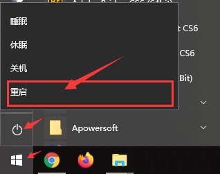 6、為保證修改的設(shè)置可以生效,返回電腦桌面中,鼠標左鍵點擊左下角的“Win開始”,在彈出的列表中選擇“電源標志 - 重啟”選項。