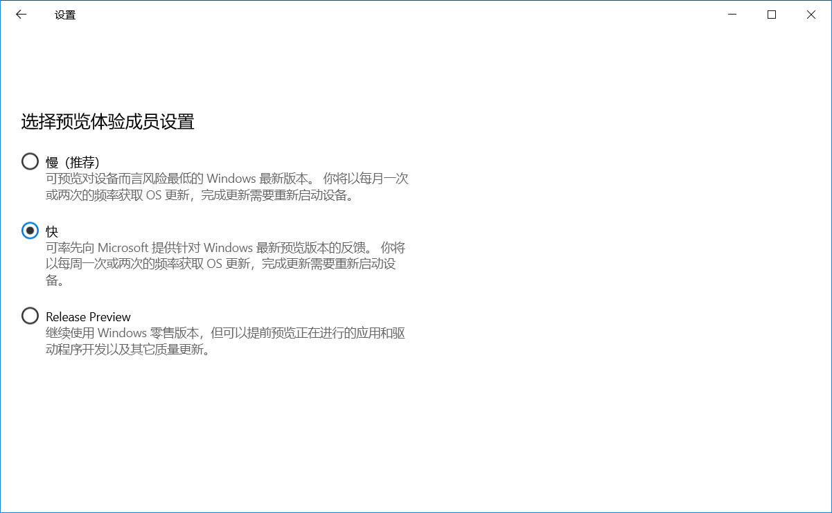 ◆ 選擇預(yù)覽體驗(yàn)成員設(shè)置:快