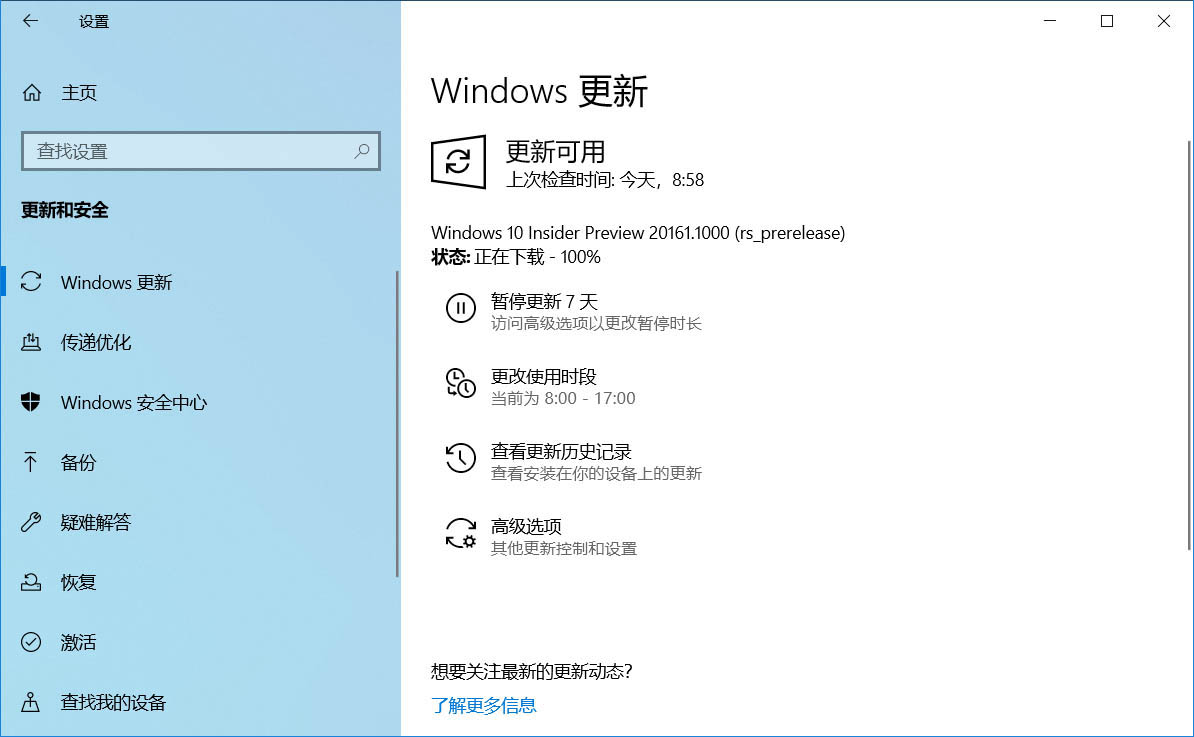 Win10 Dev預(yù)覽版Build 20161怎么下載更新?