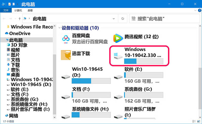 進入資源管理器,我們可以看到系統(tǒng)C:\盤 - Windows 10-19042.330;