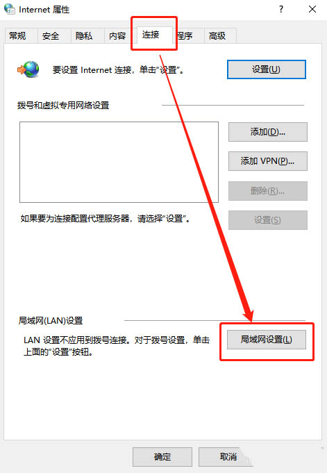 3、頂部頁簽切換到“連接”,點(diǎn)擊進(jìn)入局域網(wǎng)設(shè)置