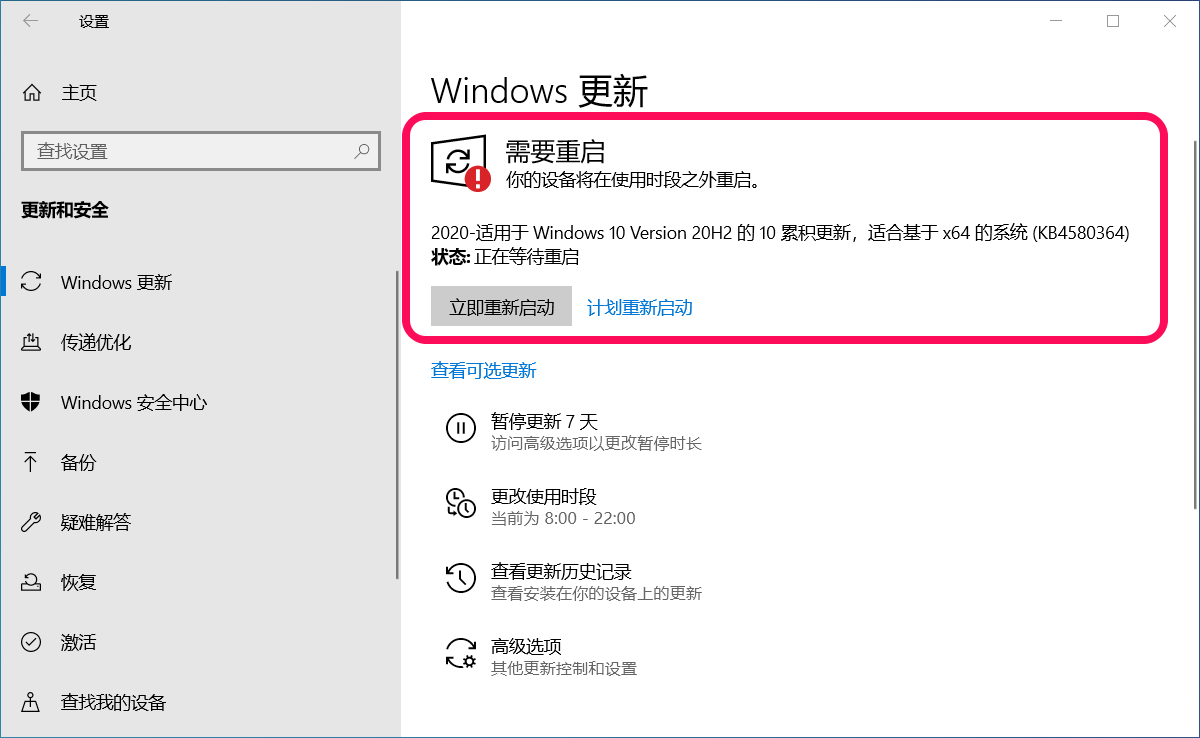 點(diǎn)擊電腦重啟后,進(jìn)入配置更新: