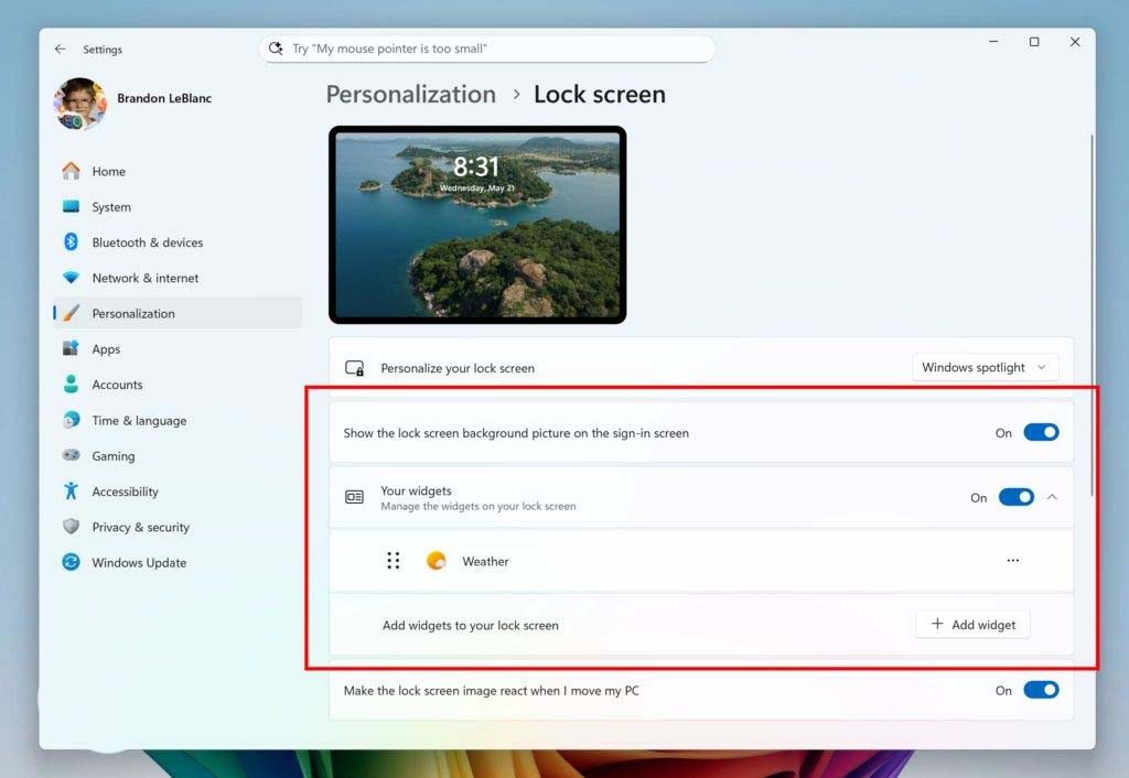 本次 Windows 11 預(yù)覽版最值得關(guān)注的改進,就是微軟升級了鎖屏界面的功能,重構(gòu)了小組件體驗,取代了以往簡單的“天氣及更多”顯示。
