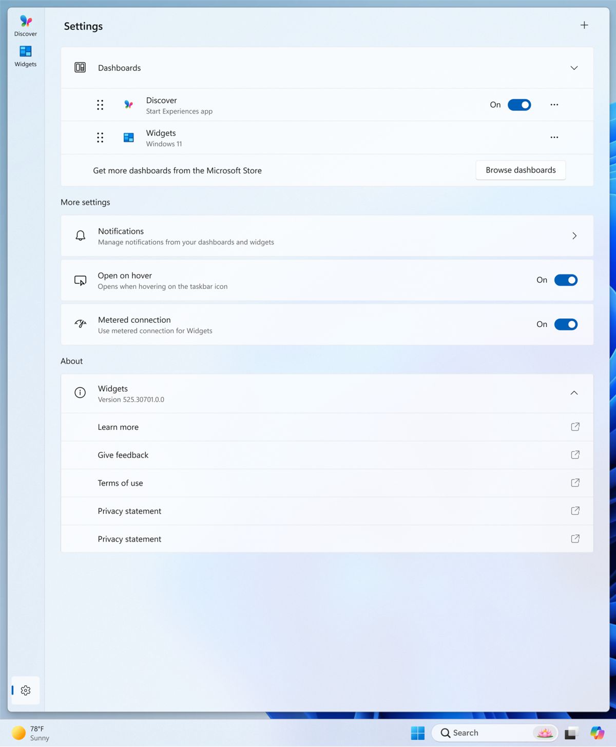本次更新最值得關(guān)注的改進(jìn),在于微軟重新設(shè)計(jì)了小組件面板。微軟引入了一個(gè)全新的全頁式設(shè)置界面,用戶現(xiàn)在可以更自由地調(diào)整各個(gè)儀表板的順序,并將最常用的儀表板設(shè)置為默認(rèn)啟動(dòng)項(xiàng),確保每次打開時(shí)都能獲得一致的體驗(yàn)。