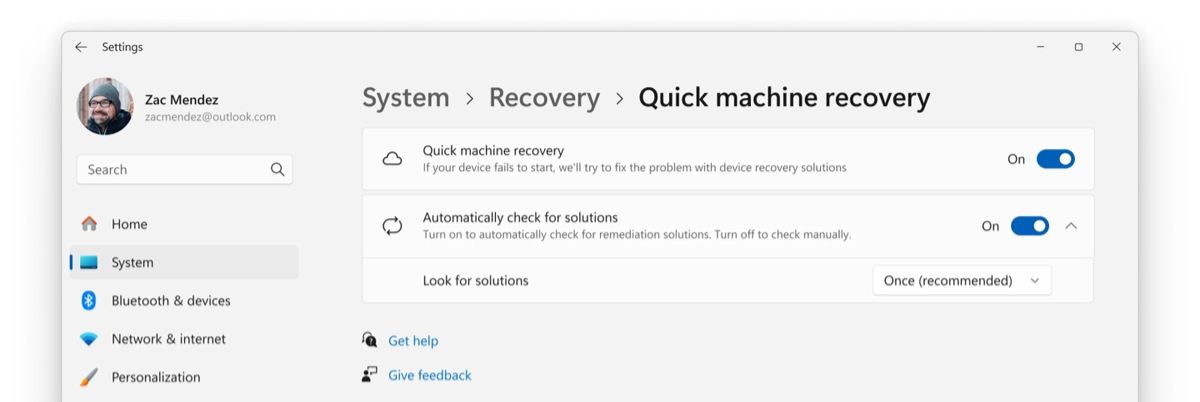 本次更新另一個(gè)值得關(guān)注的改進(jìn),在于邀請(qǐng)用戶測(cè)試新版“快速計(jì)算機(jī)恢復(fù)”(QMR)與“智能應(yīng)用控制”(SAC)。QMR 是一項(xiàng)遠(yuǎn)程修復(fù)工具,可以讓 IT 管理員無需物理接觸設(shè)備,遠(yuǎn)程解決 Windows 啟動(dòng)故障。