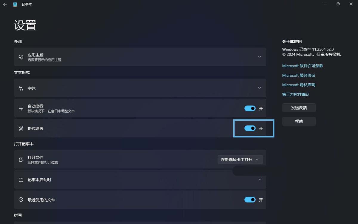 3、在「文本格式」區(qū)域中,打開或關(guān)閉「格式設(shè)置」開關(guān)。