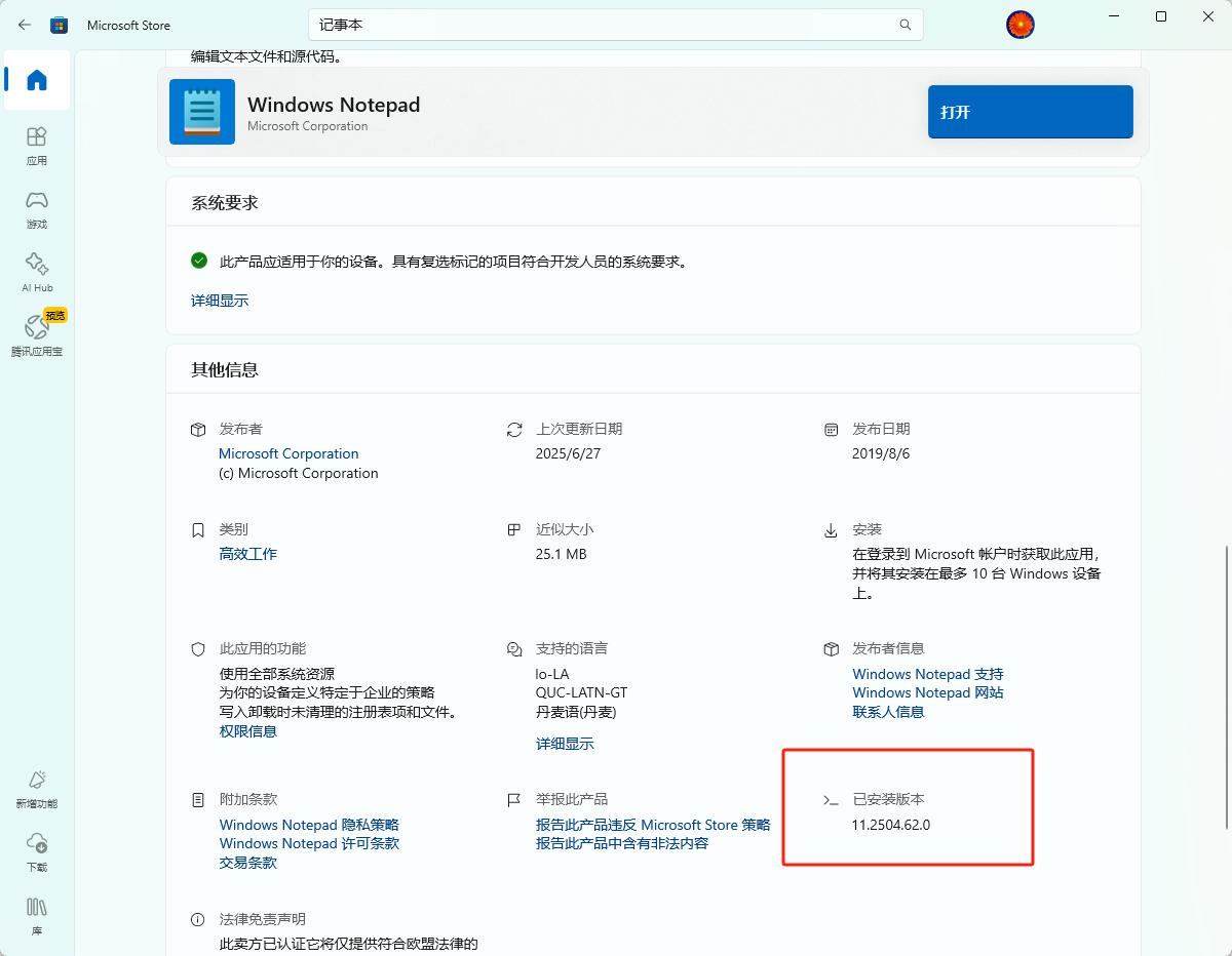 微軟于2025年5月向全球Windows 11用戶推送了新版記事本(版本號≥11.2504.50.0),用戶只需打開微軟應(yīng)用商店(Microsoft Store),搜索“記事本”并點擊更新,即可免費獲取該功能!