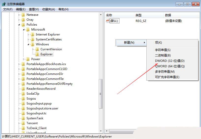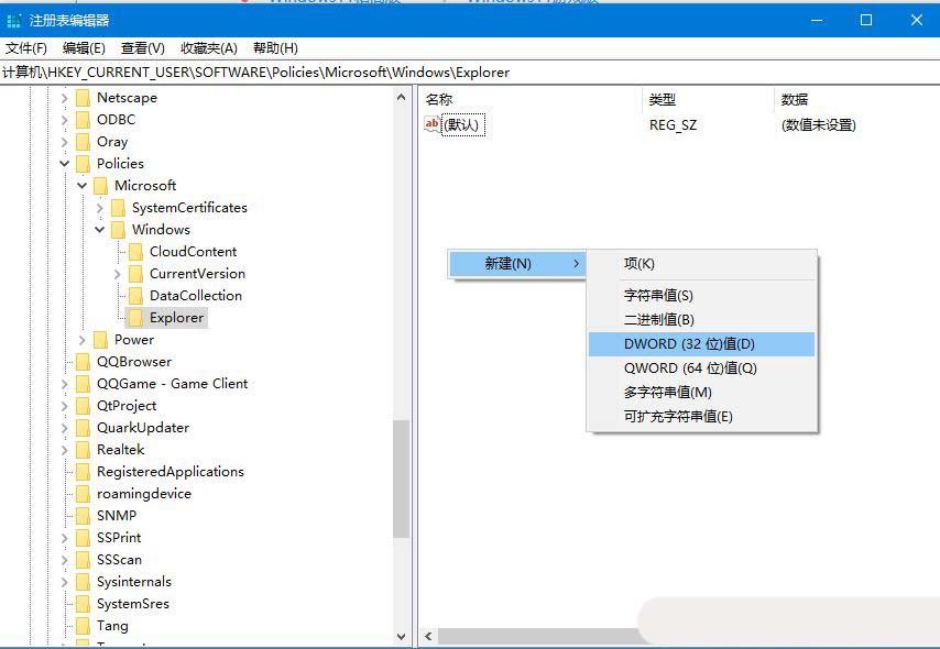 3、然后,右鍵點(diǎn)擊“Windows”,選擇新建一個(gè)名為“Explorer”項(xiàng)。