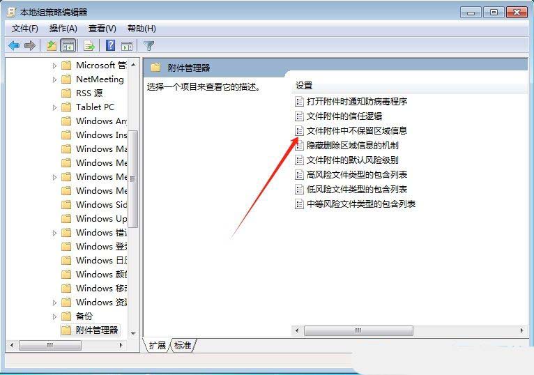 3、然后,雙擊打開其中的“文件附件中不保留區(qū)域信息”。