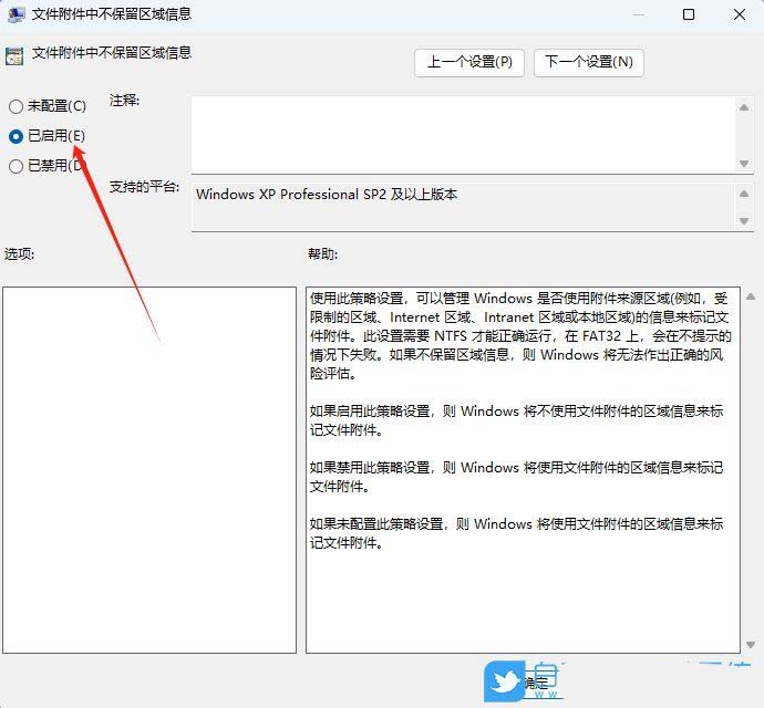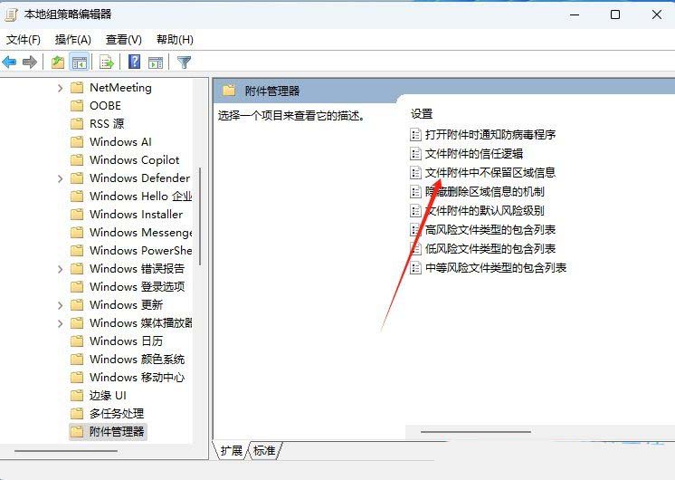 3、然后,再找到并雙擊打開“文件附件中不保留區(qū)域信息”項。
