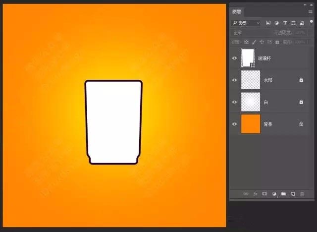 3、塑造玻璃杯子的玻璃質(zhì)感,鋼筆勾勒輪廓,設(shè)置白色填充,調(diào)整圖層不透明度得到