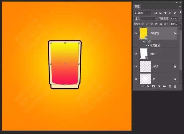 1、給背景填充你喜歡的顏色,鋼筆勾勒出玻璃杯的外形,添加圖層樣式——漸變疊加,添加圖層樣式——漸變疊加