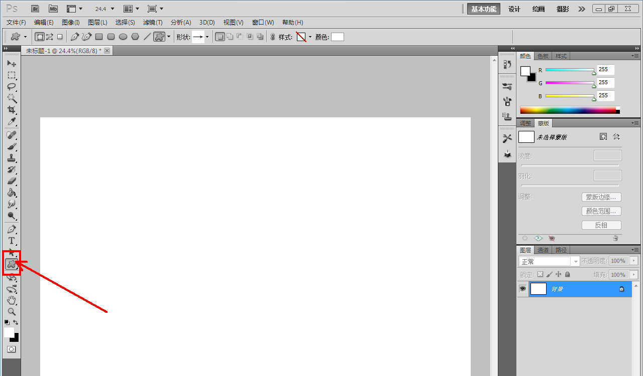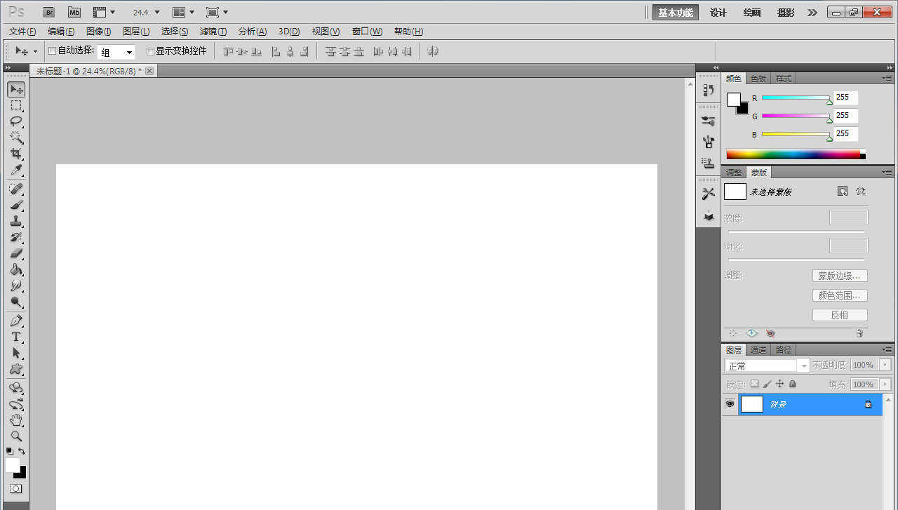 1、打開Adobe Photoshop CS5軟件,進(jìn)入軟件工作界面;